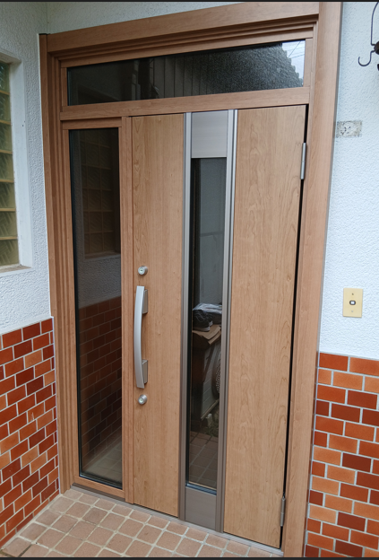40年ほど前の玄関ドアを新しいものにリフォームさせていただきました。 今回使用した商品は「LIXIL玄関ドアリシェント」で、見栄えも機能も充実しました。